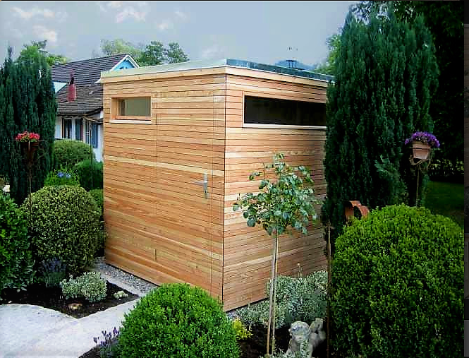 Domek ogrodowy z płaskim dachem